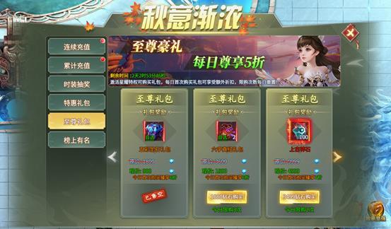 活动期间,星耀特权还可购买额外至尊礼包,同时还是享受到每日首次5折的折扣力度。