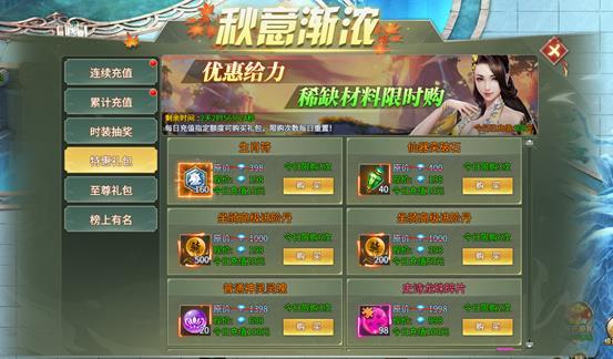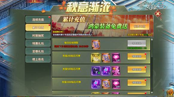 活动期间,累计充值指定金额可获得各类稀缺材料,更有鸿蒙装备限时投放。