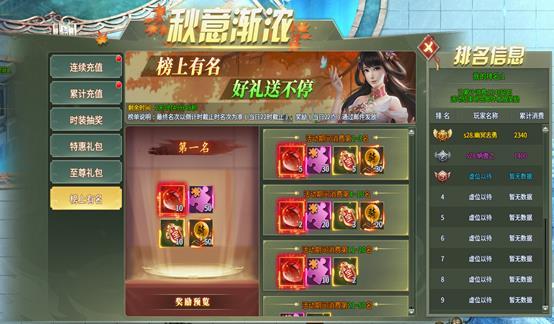 活动期间,每日结算消费榜,排名越高获得奖励也就越高,更有鸿蒙神石。