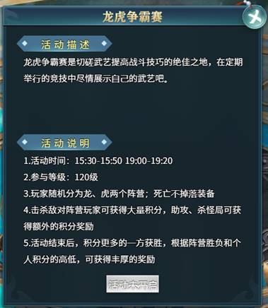 每天15:30~15:50和19:00~19:20可以参与龙虎争霸赛活动。