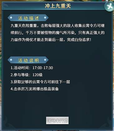 每天17:00~17:30可以参与冲上九重天活动